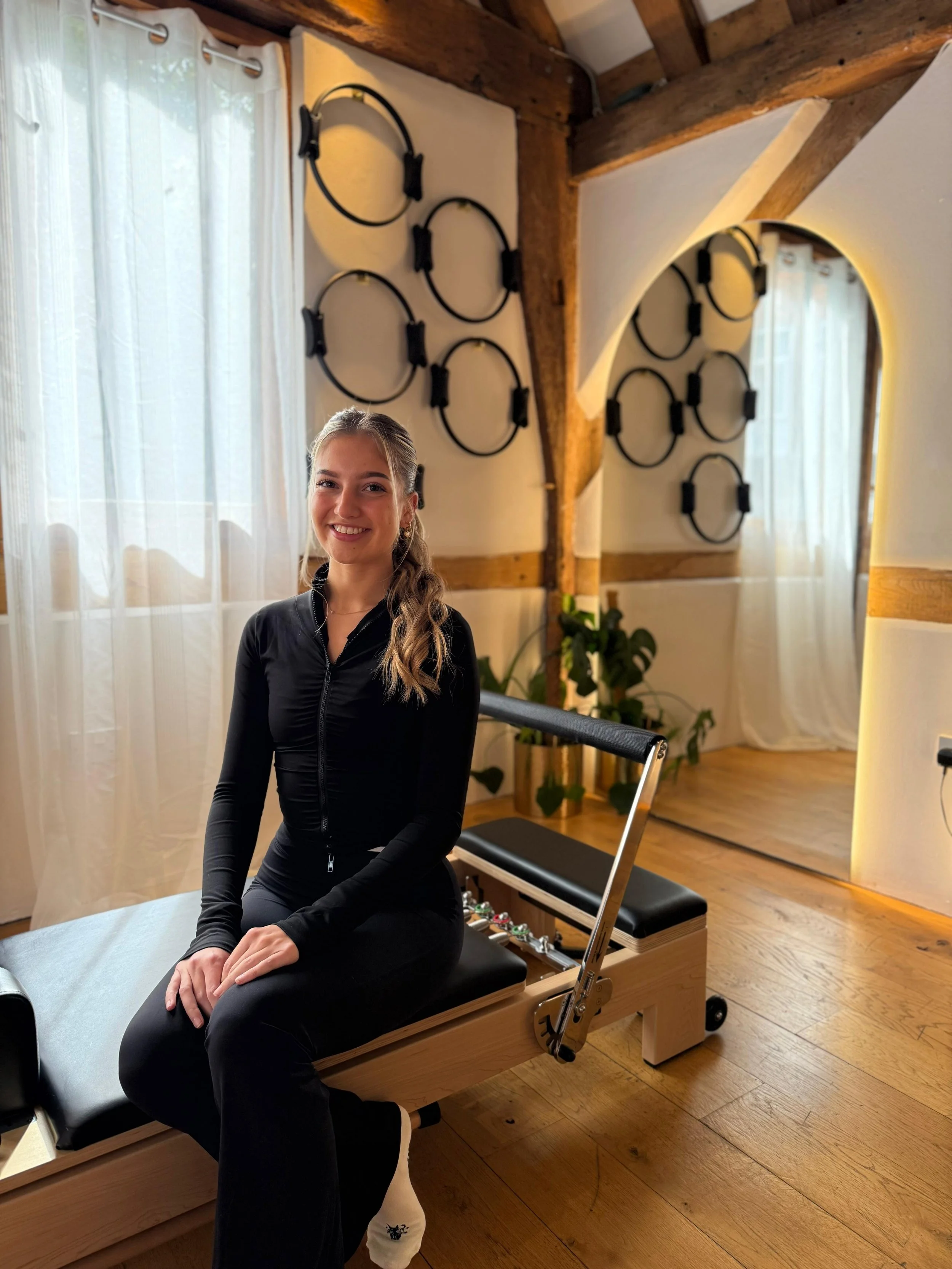 I’m Lily. I’m 27, based in beautiful Berkshire, and the proud dog mum to my rescue pup Pearl. After years in the corporate world (and a few thousand miles in the sky as cabin crew from 18–22 ✈️), I decided to make a bold change and follow a passion that truly lights me up — Reformer Pilates.